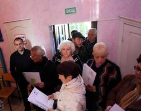 Дивно, але біля районного управління фонду я не побачив великих черг. Галина Завалишина каже, що коли трапляється так, що до них прибуває багато народу, тоді всі 62 працівники управління виходять і розподіляють клієнтів між собою, аби люди довго не стояли в черзі.