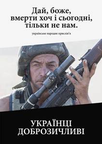 "Ідея етно-мотиваторів виникла дуже спонтанно - побачив світлину українського вояка у масці з зображенням черепа. І відразу в голові промайнула думка "Гостинний хлопака". Почав шукати іншій фотографії, до яких так само згадувались прислів'я українські", - розповів Приймаченко про серію із українськими прислів'ями.