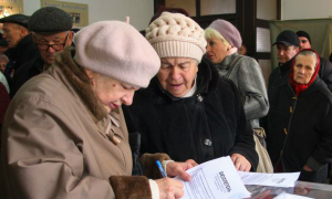Щоб рятуватися від переохолодження, люди змушені стояти в черзі по зміні - одні члени сім'ї змінюють інших. "Ми змушені стояти і голосувати, оскільки нас попередили, що без соціальних карток не буде ні пенсій, ніякої соцдопомоги. Але найсмішніше, що ці карти дадуть нам знижку в половину вартості проїзду в електротранспорті, а він у місті не працює через обірвані під час обстрілу дроти. Тролейбуси і трамваї стоять", - кажуть луганчани.
