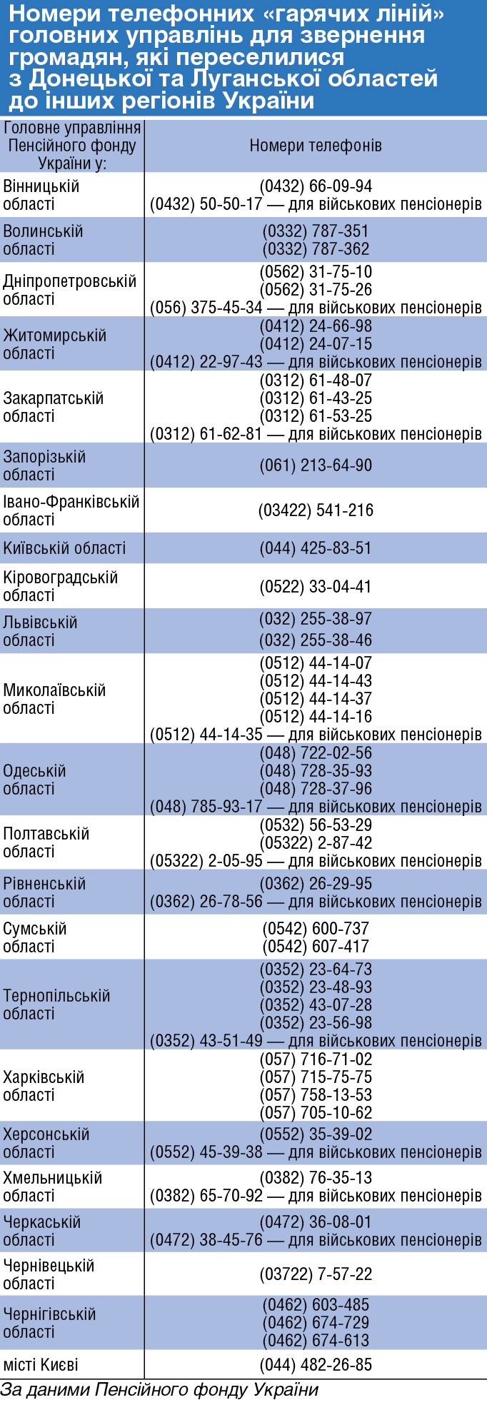 Телефонні «гарячі лінії» працюють в усіх управліннях Пенсійного фонду України в областях, а також у місті Києві.