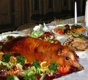 На новорічному столі обов’язково були присутні страви зі свинини. Язичники вважали свиню місячним тваринам, а Василь, який в християнстві став святим, був покровителем свиней. Крім того, ця тварина традиційно вважалося символом родючості і достатку.