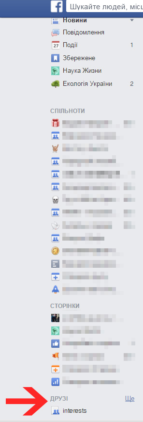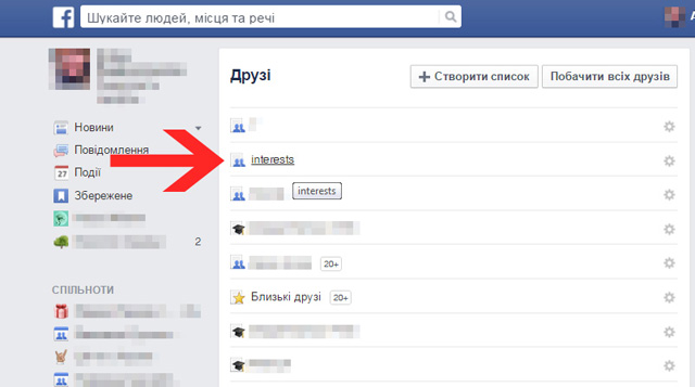 Списки друзів будуть відображатись зліва від потоку новин. Натиснувши на один із них, ви будете у стрічці бачити тільки новини від цієї групи людей. Щоб легко додати людей до певної групи, можна зайти в неї — на екрані з’явиться потік новин від них, а справа вгорі є кнопка «Керувати списком друзів». «Редагувати перелік» — зайти у підрозділ «Друзі» — і тоді ви можете додавати людей зі свого списку контактів до цієї групи друзів одним кліком.