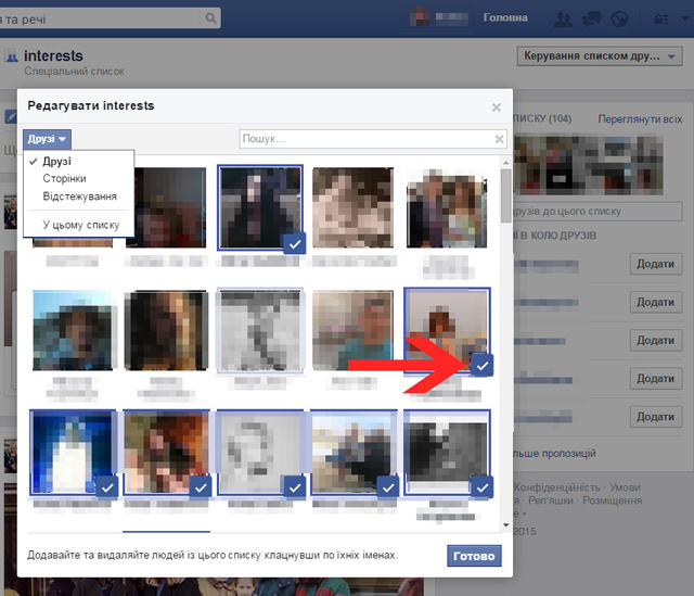 Новини від групи людей «знайомі» ви будете у стрічці отримувати не так часто — «Фейсбук» як розумна соцмережа автоматично скорочує потік публікацій від людей чи сторінок, яких він класифікує як нецікаві для вас.
