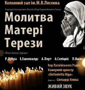 12 лютого о 19:00 у Колонному залі ім. М. В Лисенка Національної філармонії України (за адресою: Володимирський узвіз, 2) кияни та гості міста зможуть відвідати концерт «Молитва Матері Терези».