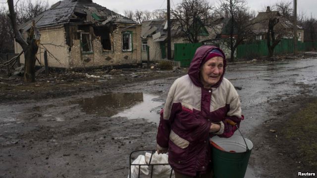 Про наслідки подій останніх місяців розповіла 77-річна українська пенсіонерка Лідія Степанівна, яка мешкає в зруйнованому передмісті Дебальцева. Вона жила тут 16 років, поки в січні її місто не стало об’єктом масштабного наступу проросійських сепаратистів.