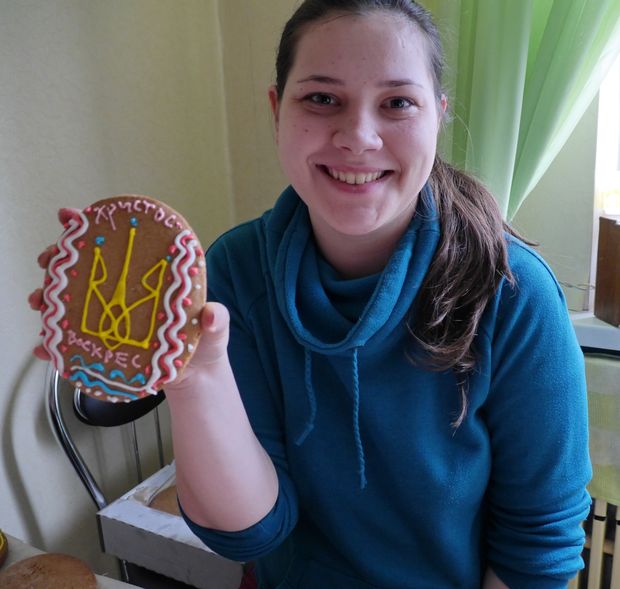 Розписані великодні пряники спекли у вигляді яєць і розписують у стилі традиційних писанкових орнаментів. Печиво будуть продавати, щоб зібрати кошти на потреби захисників України.