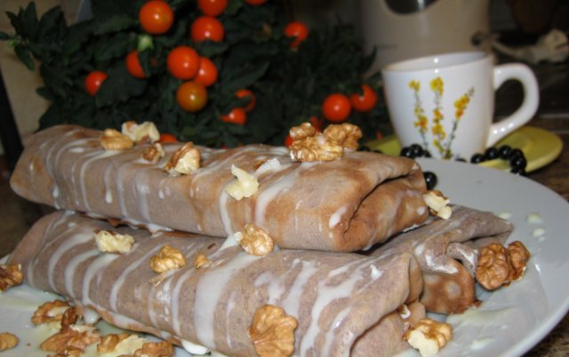 Якщо ви задаєтесь питанням - що ж приготувати до вечірнього чаювання - ми пропонуємо вам безпрограшний варіант! Шоколадні млинці з чорносливом, горішками та сметанковим кремом до ваших послуг!