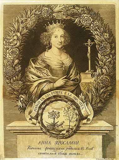 Напевно, важко знайти українця, який не чув про відому королеву Франції Анну, дочку великого князя київського Ярослава Мудрого. Вона стала дружиною французького короля Генріха І Канета, привезла до Франції не тільки коштовний посаг, а й високу культуру, за що її тут шанували. Оповіді свідчать, що Анна була дуже освіченою — володіла багатьма мовами, переписувалася латиницею з Папою Римським. На багатьох державних документах Франції збереглися її підписи слов’янською мовою — найдавніші зразки українського письма, в оточенні підписів–«хрестиків» неписьменної французької знаті. Загальновідомі факти: Анна привезла з Києва у Францію Євангеліє, що пізніше стало відомим як «Реймське», на якому присягали під час коронації усі наступні французькі королі. Цікаво, що один із нащадків Анни Ярославни (син її онука, короля Франції Людовіка VI) — Генріх (1121—1175) був архієпископом Реймса.
