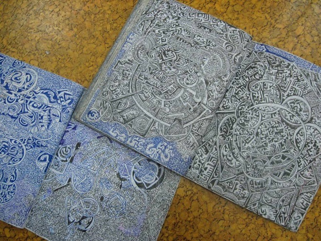 «З зошитів сам роблю журнали. Мої роботи містичні. У них я використовую давнє ексклюзивне письмо з Саудівської Аравії. У малюнках є давні шрифти. Писав їх сам, з голови».