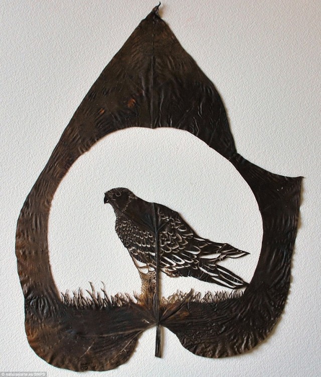 «Мене надихнула гусениця, яка поїдала листя, і я подумав:«Чому б не спробувати самому вирізати малюнок на аркуші?» Після цього я вивчив різні техніки різьблення по листю, які допомогли розвинути мою нинішню роботу. Я починаю з того, що збираю листя, мию, сушу, пресую і ріжу. А поки воно знаходяться під пресом, я роблю начерк майбутнього візерунка. Потім я накладаю малюнок на лист і починаю акуратно вирізати. Різьблення ‒ найскладніша частина роботи, тому що листя ‒ дуже крихкий матеріал, і щонайменша помилка може зіпсувати тижні роботи. Я вдосконалюю цю техніку вже більше чотирьох років. Я зробив і продав багато таких різьблених листочків, але найперший я зберіг для себе і поставив в рамочку», ‒ розповідає художник.