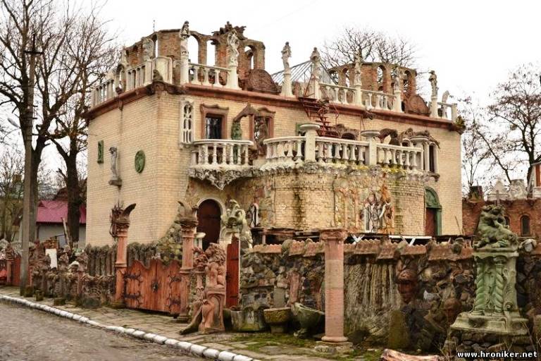 Над цим шедевром скульптор Микола Головань працює вже понад 30 років. Його дім перетворився на витвір мистецтва, оздоблений більш як 500 фантазійними скульптурами. Люди прозвали його «будинком з химерами», та самому автору це не до душі. Це у Києві, на Банківській, сидять химери – каже Микола Головань. – Тут химер немає. Майстер ладен називати своє творіння Вернісажем творчості. //vsviti.com.ua