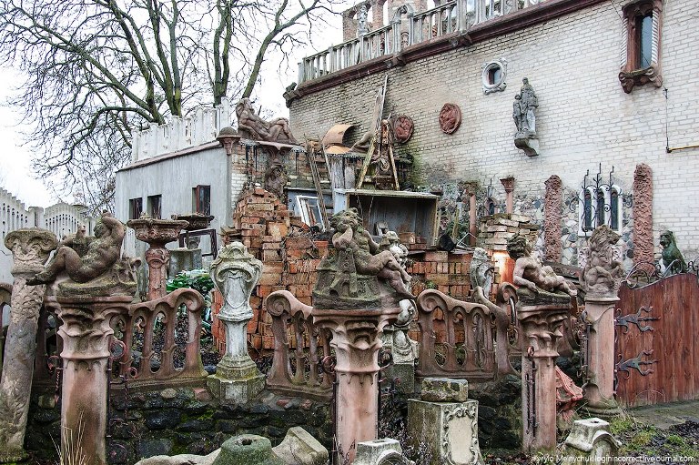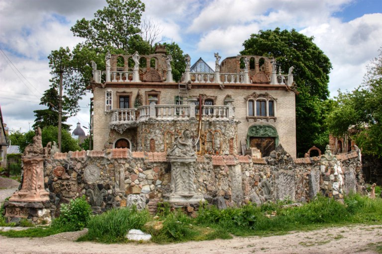 Палац скульптора у два поверхи майже повністю витесаний з каменю. Камінь, який поєднує найрізноманітніше:грецьке, французьке, фламандське, епоха відродження – скульптури, медальйони на стінах… Готичні горгулії і античні красуні, барокові святі і сучасні дівидивовижним чином створюють цілісний ансамбль прекрасного.