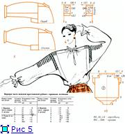 Сутність конструктивних прийомів побудови креслення даної сорочки полягає в наступному: виріб створюється на основі прямокутних деталей крою; збірки, що йдуть від лінії горловини на кожній деталі, створюють необхідний обсяг відповідно до форми фігури: спереду - для забезпечення опуклості на грудях, ззаду - для створення свободи руху в області спинки, у верхній частині рукава - для оформлення плеча. Великий виріз горловини з відповідною кількістю збірок забезпечує хорошу посадку виробу на повних і худих фігурах, не створює збільшеного об'єму виробу на фігурах невеликих розмірів, а прямі лінії крою не створюють візуального збільшення об'єму всього виробу. Конфігурація пройми нагадує пройму вироби з рукавами покрою реглан.