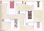 Приклади розташування орнаментів на сорочках такого крою, на схемах також вказані розміри: