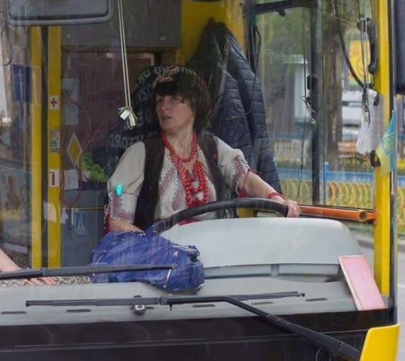 Комунальне підприємство "Київпастранс" опублікувало фотографію водія київського тролейбуса Валентини Шостак на робочому місці в українському національному костюмі. //www.5.ua