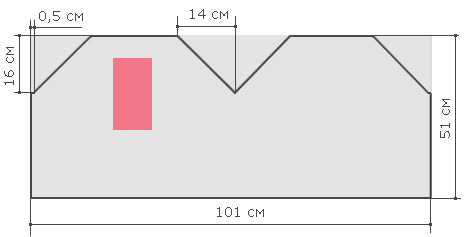 4. Викрійка сорочки. Викрійка даної моделі надзвичайно проста. Спочатку з шматка льону вирізаємо 1 прямокутник 101х51 см (основна частина); 2 однакові прямокутники 46х23 см (рукава). Далі, озброївшись олівцем та лінійкою, відповідно до малюнків розкреслюємо наші прямокутники і відрізаємо зайве. Червоним кольором вказані ймовірні місця розташування візерунків.