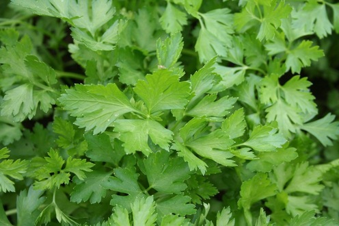 Петрушка — джерело вітамінів С і А, для отримання добової дози потрібно з’їсти 50 г зелені. Також її використовують для нормалізації тиску, як сечогінний і жовчогінний засіб. Як і базилік, петрушка освіжає подих. Полісахарид інулін, який є в петрушці, нормалізує обмін глюкози і підвищує засвоєння марганцю, необхідного для міцних кісток і зубів. Не рекомендується вживати петрушку в першому триместрі вагітності, оскільки вона може спровокувати викидень.