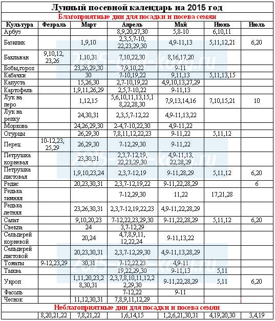 Місячний календар садівникові-городникові 2015 рік – посіву і посадок