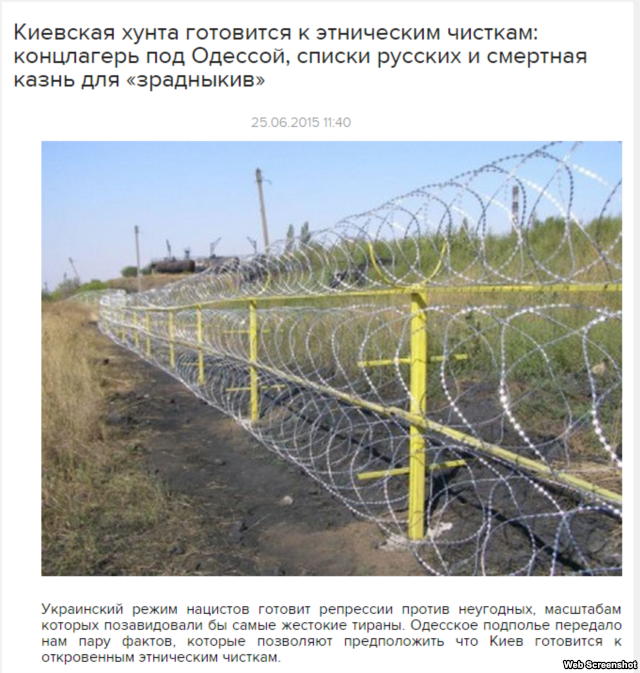 25 червня російський портал «Журналистская правда» опублікував матеріал про буцімто будівництво концтаборів для росіян на території України. Зокрема в Одеській, Донецькій та Миколаївській областях.