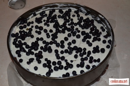 Викладаємо на верх торта. Зверху на крем викладаємо 1 ст. ложку чорниці, залишаємо торт в холодильнику ще на 1-2 години.