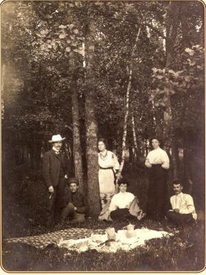 Святкування Великодня в 1906 р. на природі, у народному одязі Ізидора Косач