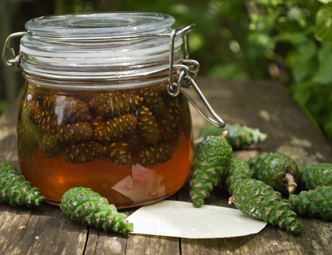 Якщо під час настоювання верхній шар шишок покриється цвіллю, то його треба зняти і викинути, а що залишилися шишки присипати цукром.