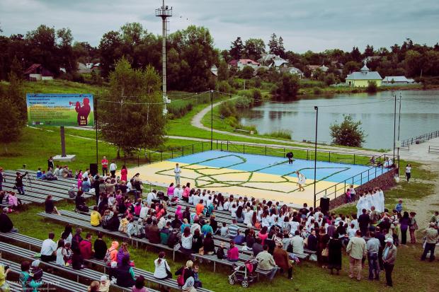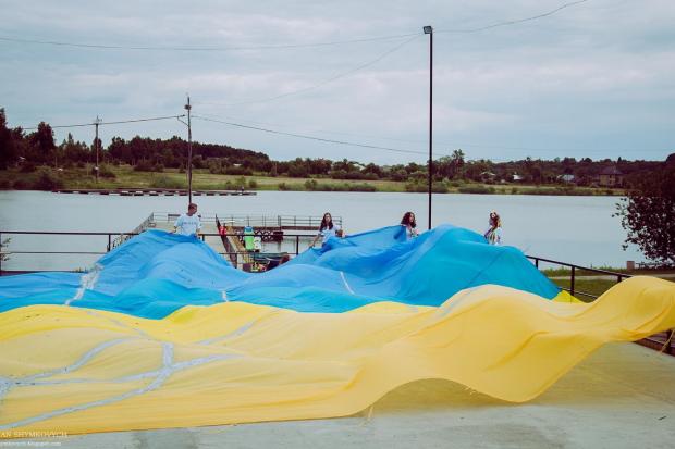 На центральній сцені Долинського міського парку відбулася патріотична акція зі встановлення нового рекорду України: викладення на національному Прапорі найбільшого Герба України зі свіжого кропу.