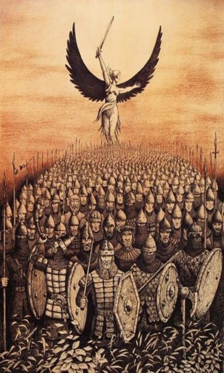 Велика богиня війни та перемоги. Її ім`я багаторазово згадується у Велесовій книзі. Із зображенням крилатої богині на щитах чоловіки йшли в бій. За припущенням деяких вчених, від імені Слави походить назва слов’ян.