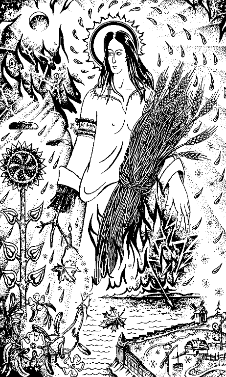 З предковічних часів світлолика богиня всіх земних вод і стихій Дана, своїми широкими та глибокими водами омиває всевічне Дерево життя. Вічно прекрасна, вічно свіжа Діва є водночас дружиною Дажбога, його найбільшої сонячної сили. Це їхнє весілля святкують боги і весь світ на Купала. Саме в цей час богиня Дана і бог плодючості Симаргл силою єднання води і вогню щедро обдаровують світ любов’ю, а жінці-матері посилають дитину, щоб росла здоровою і щасливою на радість батькам. Завжди наші діди-прадіди молилися до чистих джерельних вод Матері-Землі.