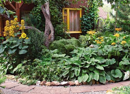 Садові квіти можна доповнити «групою підтримки», що складається з декоративнолистих рослин. В якості таких рослин можуть виступати хости,гейхери або папороті.