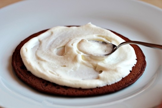 Приготувати крем, вершки змішати з пудрою і збити. Намазувати кожен млинець.