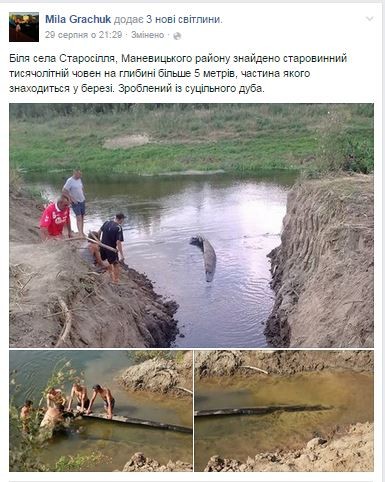 Древній човен, якому щонайменше півтисячі років, витягнули з ріки Стир поблизу села Старосілля Маневицького району на Волині.