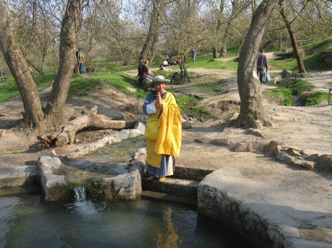 Дзюнсей Терасава - японський буддист, консультант Міжнародного Бюро Миру, насолоджується потоком цілющих вод та енергій Терпіння і Кам'яної Могили.