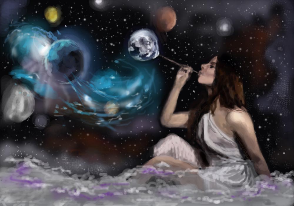 Новонароджена планета Земля голубилася в ковдрі щільних хмар. Піддаючись послідовним діям, частинки, з яких ці хмари складалися, утворювали тверді тіла на зразок астероїдів, що із страшною швидкістю падали на планету. Це були зіткнення гігантського масштабу - останнім на Землю впало тіло розміром з Марс. В результаті удару утворилося вогненне кільце, що обпалило поверхню обох планет. У космос виплеснувся фонтан розплавленої скельної породи, а потім дрібні уламки злипнулися на орбіті в одну розжарену кулю. Так народився наш Місяць. З його виникненням швидкість обертання планети сповільнилася - інакше доба на Землі тривала б вісім годин. Атмосфера була б багатшою киснем, але містила б і велику домішку двоокису вуглецю. Через більшу швидкість обертання над планетою бушували б могутні вітри, перешкоджаючі зростанню дерев. Тваринам знадобилася б незвичайна сила, захисна броня, низький зріст і прискорений обмін речовин. Місяць стабілізував обертання Землі. Без нього планети чекали б постійні різкі зміни клімату - засухи, потопи і льодовикові періоди.
