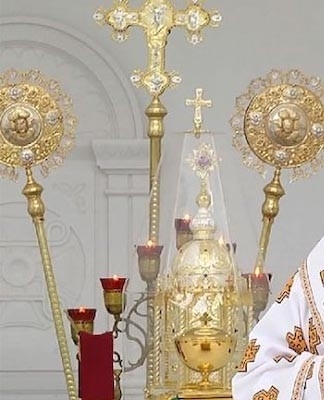 Позаду престолу знаходяться рипіди – металеві віяльця із зображенням серафимів – на знак невидимої присутності ангельських сил біля престолу Господнього.