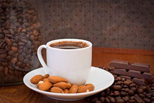 Інгредієнти: 60 г темного шоколаду, 60 г цукру, півсклянки води, 2,5 склянки молока, 1 столова ложка розчинної кави, 80 мл коньяку, 80 мл лікеру «Амаретто», вершки, смажений подрібнений мигдаль.