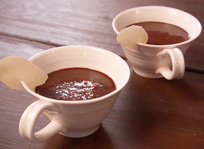 Інгредієнти: 170 г темного шоколаду, 2 склянки молока, 1 склянка вершків, 0,5 склянки апельсинового соку, цедра з половини апельсина, 80 мл апельсинового лікеру («Гран Марні»).