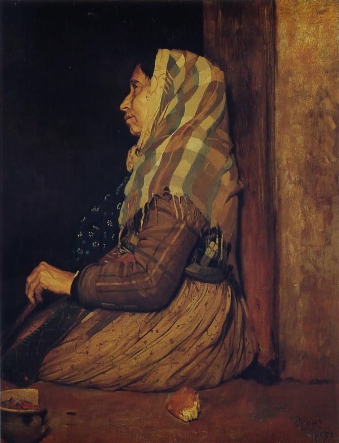 На розі цієї вулиці сиділа вже старша жінка і просила милостиню у перехожих - завжди на тому самому місці, нерухомо, як статуя, з простягнутою рукою й опущеними до землі очима.