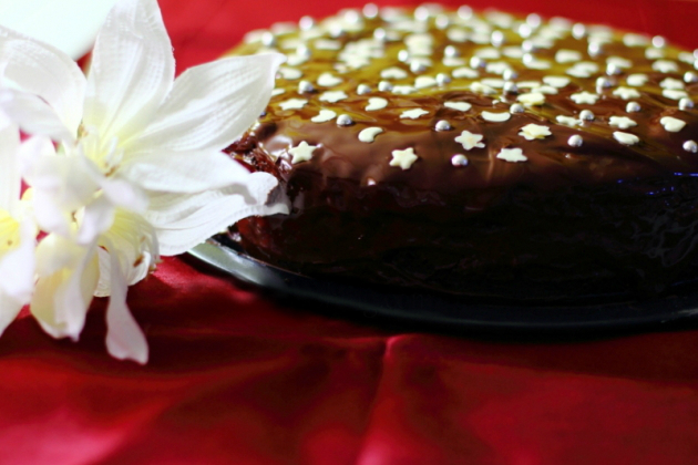 7) Розтопити шоколад на водяній бані. Ввести масло і мішати вінчиком до однорідності. Щедро полити вистиглий маковий торт шоколадом. Прикрасити за смаком.
