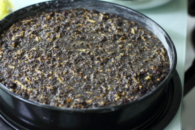 6) Вийняти маковий торт і дати трохи охолонути у формі. Провести ножем по стінках форми, обережно відокремлюючи торт і вийняти його з форми й дати остаточно охолонути.