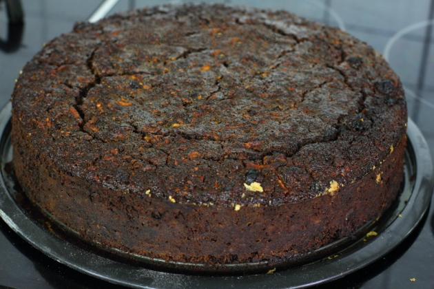 5) Поставити торт в розігріту духовку і пекти до готовності, 50-60 хвилин. Зубочистка встромлена в центрі торта, повинна виходити сухою. Поверхня торта потріскається, але так і повинно бути.