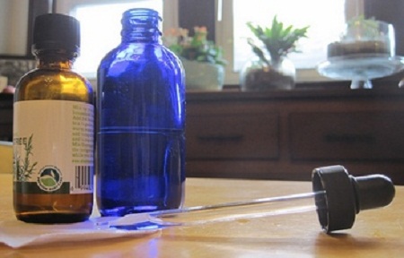 1. Візьміть спиртову настоянку трав і базову олію (одну або суміш) у співвідношенні 2:1 — для рідкого розчину. Для гелеподібного — 1:1.