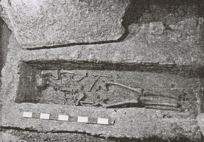 Гробниця, знайдена під підлогою храму під час розкопок у 1990-х. Зображення з книги "Історія Луцька. Том 1. Лучеськ Х—XV ст." Святослава Терського