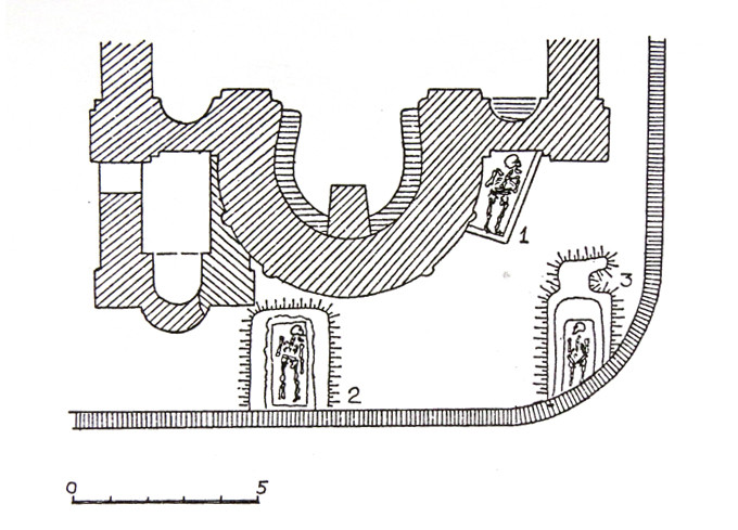 Те, що в церкві не було штукатурки, дослідники зрозуміли з однієї дуже цікавої знахідки – настінних графіті. Вицарапані на стінах знаки містили букви, слова і навіть окремі малюнки, як-от, п’ятикутна зірка, хрест з рукою тощо. Підлога храму була вистелена керамічною плиткою.