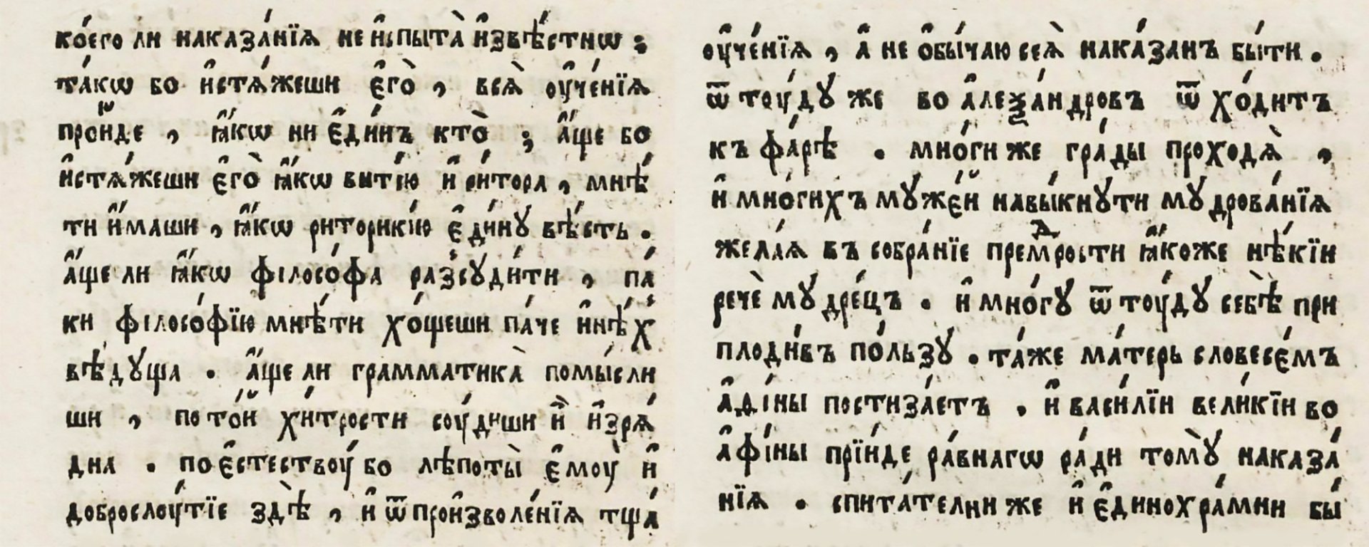 Всі літописи, діловодство, листування, викладання велися церковно-слов’янською, яка фонетично та граматично далека від української мови. Ця офіційна мова церкви, нав’язана, так званими «просвітителями», Кирилом та Мефодієм, була чужа народу. В ортодоксальному середовищі церковно-слов’янська була аналогом «мертвої» латинської мови католицького світу, яка не мала народу носія і була мовою освіти, науки та літератури. Тому ми зараз і читаємо літописи, наукові та художні твори середньовіччя малозрозумілою, штучною і схожою на російську мовою.Яскравим прикладом є «Граматика» Мелетія Смотрицького видана в 1619 році друкарнею Віденського братства. Ця книга лягла в основу «Російської граматики» Михайла Ломоносова.