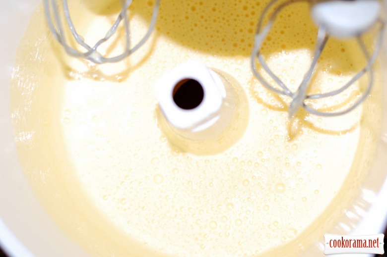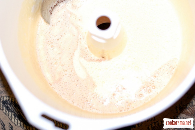Додати розтопений шоколад, гаряче молоко з ваніллю, какао. Гарненько вимішати: