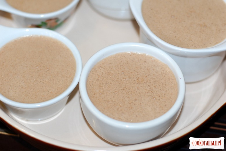 Розлити масу в невеличкі термостійкі формочки. Помістити їх у іншу форму, в яку залити до половини висоти формочок гарячу воду: