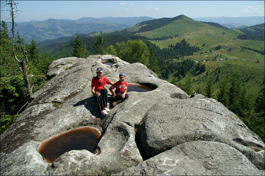 На її вершині знаходиться плаский майданчик, звідки можна милуватися дивовижними красотами Карпатських гір. Так повелося, що люди, що потрапили сюди, залишають свої автографи, «розпису» – звідси і назва цього артефакту. За століття існування тут нагромадилася величезна кількість написів, малюнків – їх деталі простежуються в гуцульських національних орнаментах.