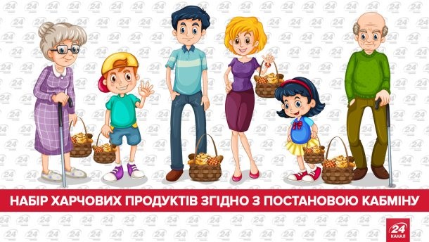 Таким чином, гіпотетичній родині з 4 людей – мама, тато, діти 3 і 7 років, на 2756 гривень зарплати треба нагодувати усіх на суму 3654.