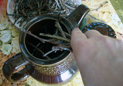 Важливо! Для заварки беріть тільки здорові гілки. Однорічні молоді гілочки заварюйте прямо з бруньками. Зі старих гілок беріть тільки бруньки.